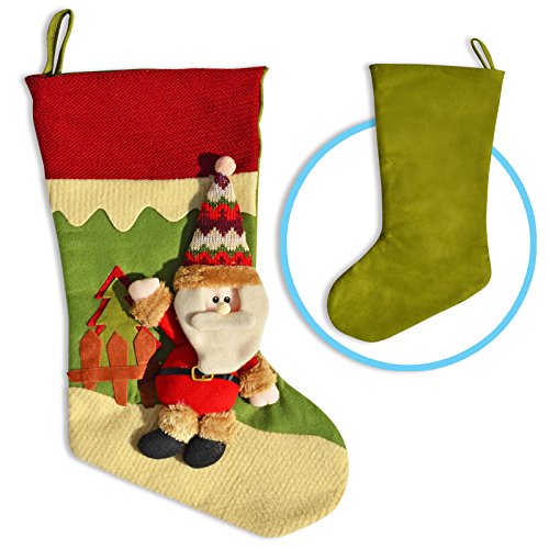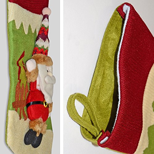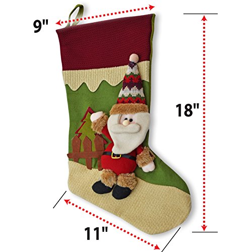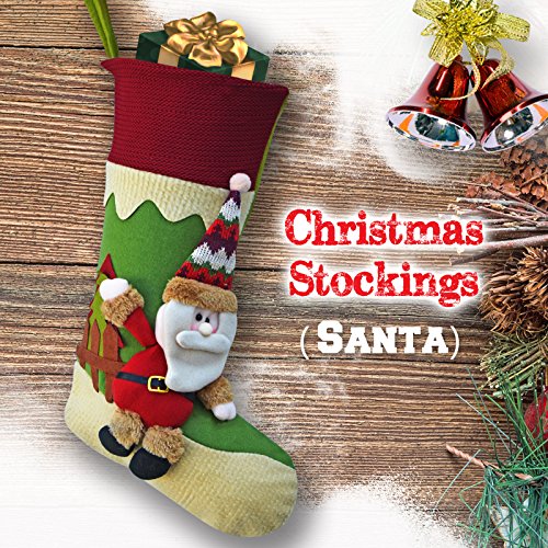 BenefitUSA 3D Christmas Stockings 18'' Hanging Xmas Wapiti/Snowman /Santa's Toy Stockings Gift Bag (3, Santa)