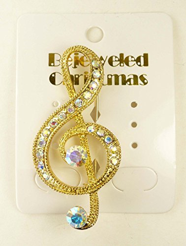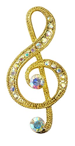 The perfect gift for the music lover in your life. Looks great on a sweater, coat or jacket. Goldtone. About 2 1/4 long overall and 1 inch wide. Pin back with safety C clasp. Not for children age 12 and under. Made in China.