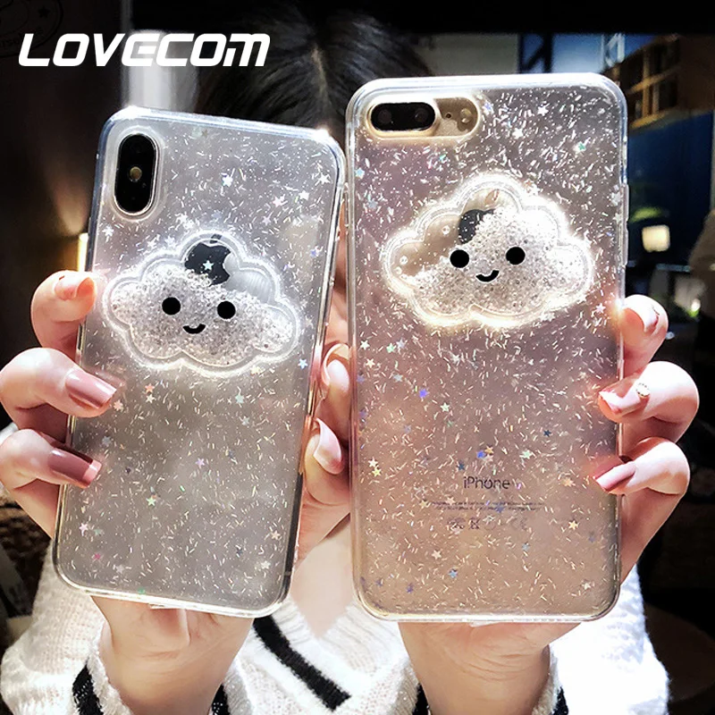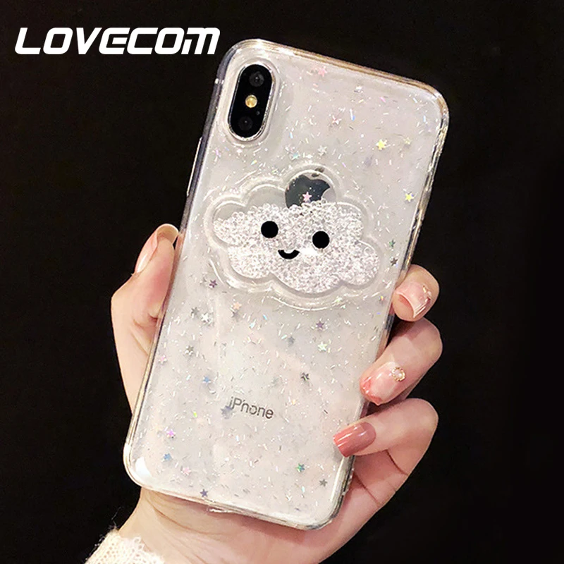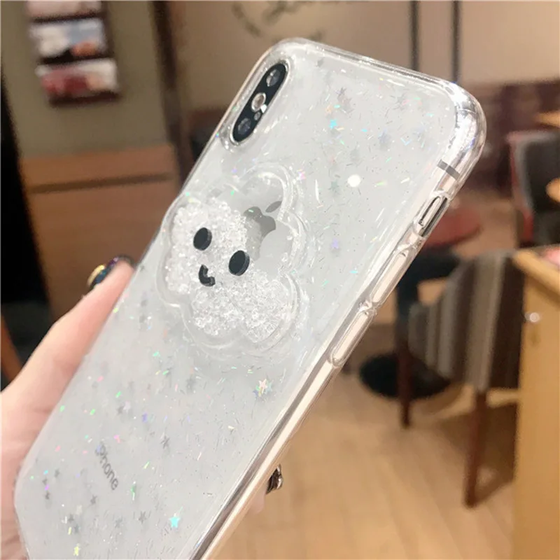 Features:Glitter Powder Smile Face Clouds Dynamic Beads Phone Case