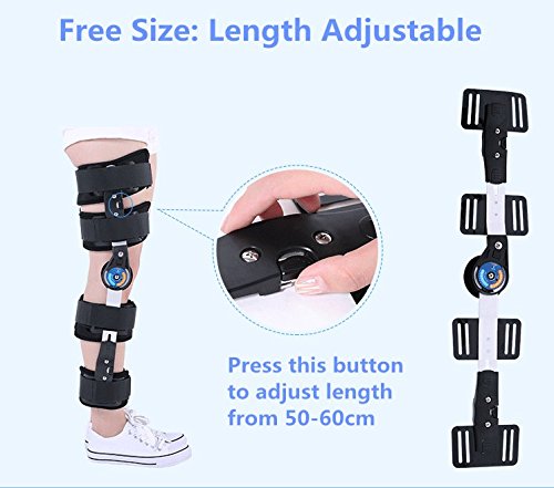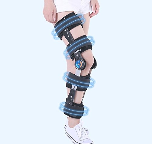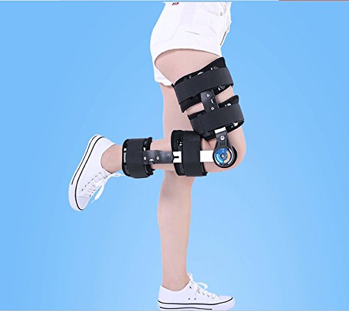 -. Feature : HIGH SUPPORT STRENGTH AFTER SURGERY: Heavy-duty military aluminum alloy holder ensures strong and stable support for knee and leg. / KNEE MOVEMENT TRANING: As you progress to recovery period, you'll need more or less extension and flexion capabilities. The bilateral range-of-motion settings can be adjusted between 0° - 120° of flexion and 0° - 90° extension which allow your leg to do knee rehabilitation movement. / INDICATION: Immediate application of knee joint fracture, patellar fracture, dislocation, meniscus injury, muscle tone, contracture, arthritis and genu recurvatum disease etc., or for stable locked or limited motion control of the knee. / STAIN RESISTANCE: Black color of hinged knee brace is dust resistance and it is more practical for patient.You don't need to wash it frequently. / ADULT FREE SIZE: Work either right or left leg, men or women.