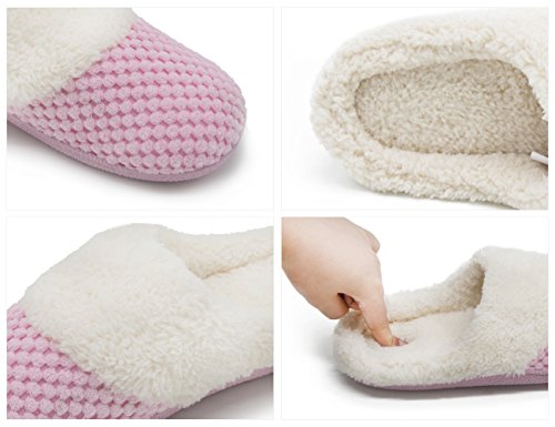 -. Feature : UNPRECEDENTED COMFORT- These slippers are the perfect shoes for women of all ages. Slide your feet into our coral velvet slippers and enjoy a new slipper wearing experience. Your feet are surrounded by the extremely cozy lininig which lets you feel like walking on a cloud. / WHY SO COMFORTABLE?-- The completely improved insole is constructed with 3 layers of memory foam and sponge to provide superior comfortability. The upper is made of coral velvet, and the underlining and insole are both made of short plush. They can absorb moisture and perspire, making the skin of your feet dry and comfortable, ideal for autumn and winter. / CLASSIC DESIGN & WELL MADE- The soft short plush lining with its exquisitely checkered coral velvet upper reflect a look of fashion and elegance. They are not just for indoors. The side-seamed outsole prevents water and dampness from absorbing into these slippers allowing you to wear them outdoors if you so desire. The environment friendly thermo plastic rubber sole with unique pattern offers you an anti-slip protection. / SIZE & COLOR OPTIONS: Available in multiple size Small (5-6), Medium (7-8), Large (9-10) and Extra Larger (11-12). These stylish slippers fit most standard foot size. Available in your choice of pink, purple and gray. / SATISFACTION GUARANTEE: With UltraIdeas, you're taking no risk with your purchase. We offer 100% no risk money-back guarantee if you're not thrilled with your purchase for any reason. Just tell us and we will do our best to give you the most satisfactory solution. Please check our UltraIdeas storefront for more slipper styles and other deals that are waiting for you!