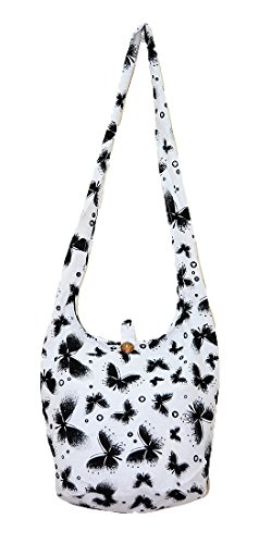 -. Brand : Pada Craft Shop -. Color : Multicoloured -. Department : womens -. Feature : 100% Cotton with Colorful Butterfly printed pattern. / Main Zip closure and Wood button closure. / Small pocket with zip inside and Liner inside. / Strap Drop : 23 inch (58 cm.) / Medium size - Height & Length : 10 inch x 13 inch (25 cm. x 33 cm.) -. PackageQuantity : 1 -. ProductGroup : Shoes -. ProductTypeName : HANDBAG -. Size : Medium -. Title : Thai Hippie Hobo Sling Crossbody Shoulder Bag Purse Handmade Zip Butterfly Cotton Gypsy Boho Messenger Medium