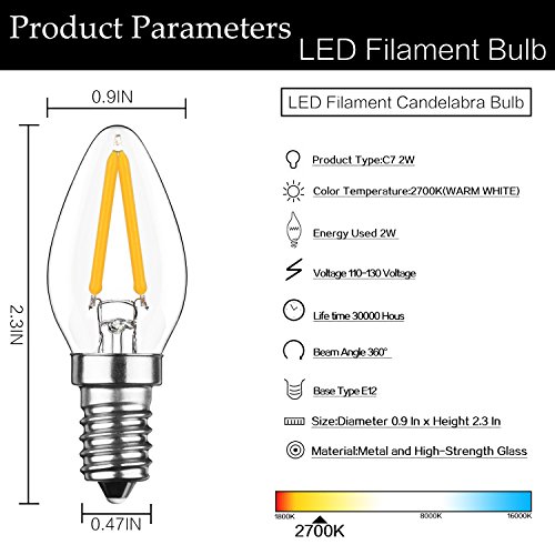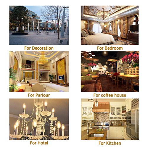 - ▶RECOMMENDED APPLIANCE--These candle shaped LED bulbs are ideal for chandeliers, sconces, lanterns, pendants, decorative indoor fixtures, or any aspect of your home with an E12 base socket that needs quality lighting.Edison style filaments create a unique atmosphere in your home, event or workspace.