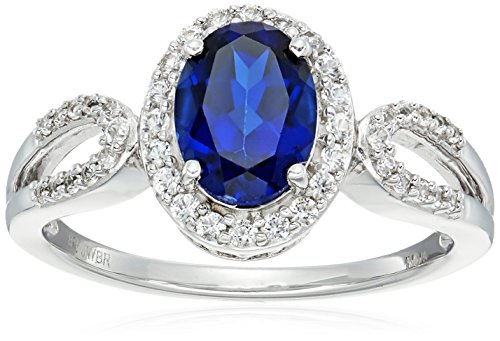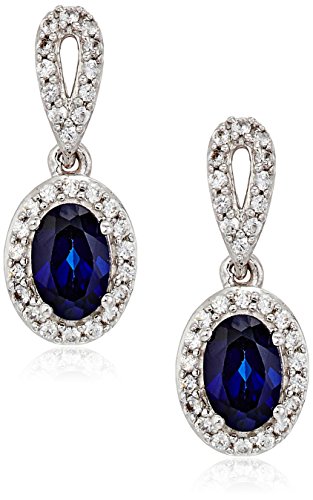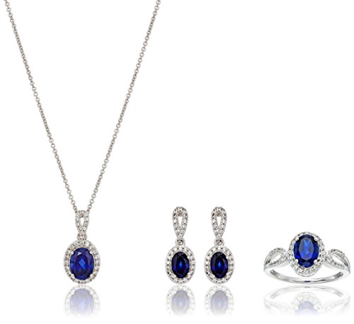 Sterling Silver Plated Brass Created Sapphire and Cubic ZIrconia Boxed Set with Earring, Ring and Pendant, 18"