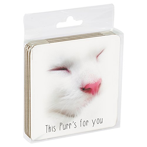 Tree-Free Greetings Set Of 4 Cork-Backed Coasters, 3.75 x 3.75 Inches, This Purr Themed Pet Lover Cute Cat Art (96174)