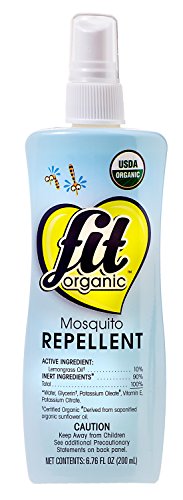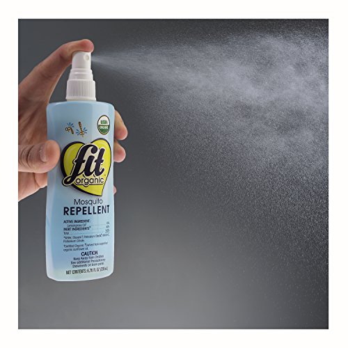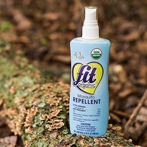 Fit Organic mosquito spray is made from organic lemongrass and oleic acid for a pleasant-smelling, safe, and synthetic-free mosquito repellent.