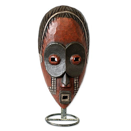 NOVICA Decorative Large Wood Mask with Stand, Red 'Dan Ghost'