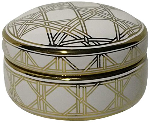 Benzara Captivating Ceramic Covered Square Design Jar Decorative, White/Gold