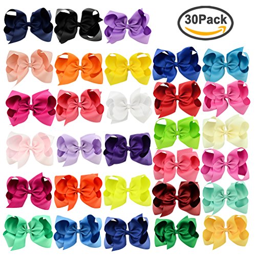 30 Pack Grosgrain Girls Hair Bows With Alligator Clips 6 Inch Boutique Big Rainbow Bows For Teens Kids Toddlers