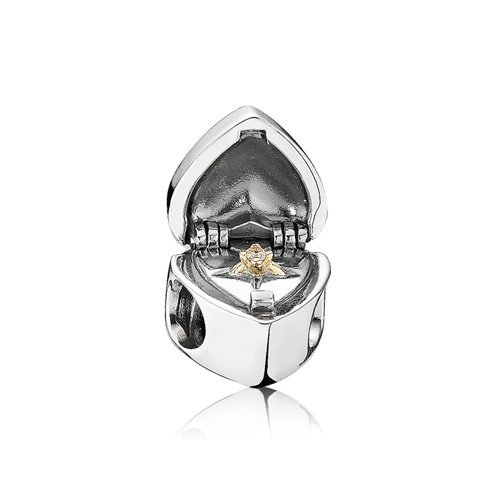 - Title : Pandora Heart Gift Box Charm in 925 Sterling Silver w/14kt Gold & CZ, 791247CZ