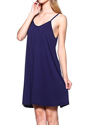 Women Casual Short Spaghetti Strap Beach Loose Halter Tank Summer Dresses Navy S