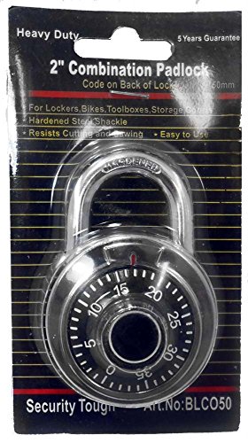 -. Feature : Silver Colored Metal Body, With A Black Face Dial And White Markings / This Lock Is 2 Inches In Diameter, With A 50mm Hardened Steel Shackle / This Lock Resists Tampering, And Cutting Or Sawing-you Can Trust In This Security / Ideal For Locking A Locker, Cabinet, Foot Locker, Bicycle, Shed, Gate And Much More / Traditional 3 Digit-preset Combination -located On The Back Of The Lock In Package