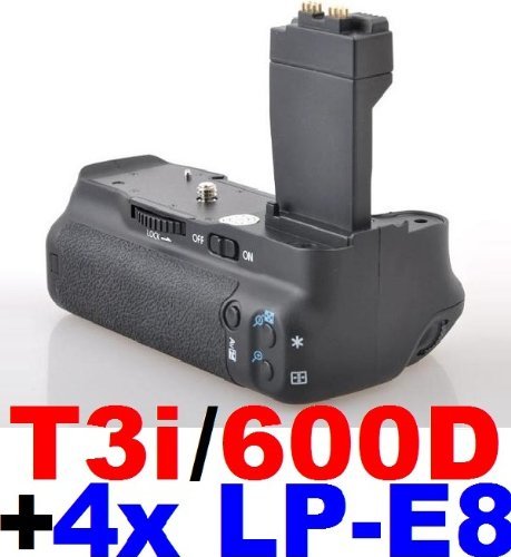 Battery Grip for Canon EOS 550D 600D/Rebel T2i T3i Camera+4x LP-E8 Batteries