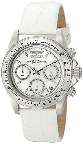 -. Binding : Watch -. Brand : Invicta -. Department : womens -. EAN : 0886678226870 -. Feature : Chronograph functions with 60 second, 60 minute and 24 hour sub dials; date window between 4:00 and 5:00 / White mother of pearl dial with silver tone and white hands and hour markers; luminous; screw-down crown and pushers; mineral crystal; stainless steel case; white leather strap / Japanese-quartz movement / Case diameter: 39mm / Water resistant to 660 feet -. Label : Invicta -. Manufacturer : Invicta -. Model : 18388 -. MPN : 18388 -. PackageQuantity : 1 -. PartNumber : 18388 -. ProductGroup : Watch -. ProductTypeName : WATCH -. Publisher : Invicta -. Studio : Invicta -. Title : Invicta Women's 18388 Speedway Analog Display Japanese Quartz White Watch -. UPC : 886678226870