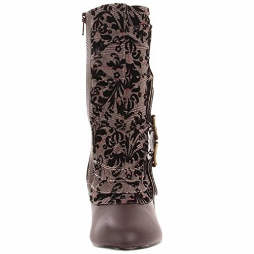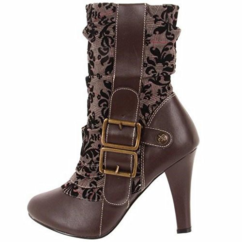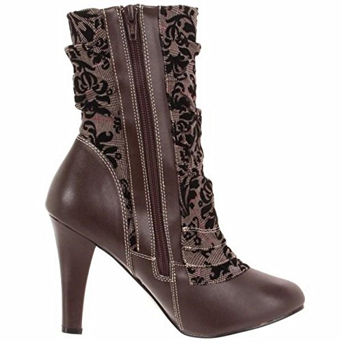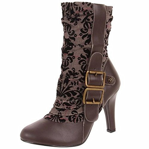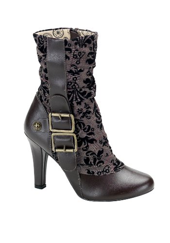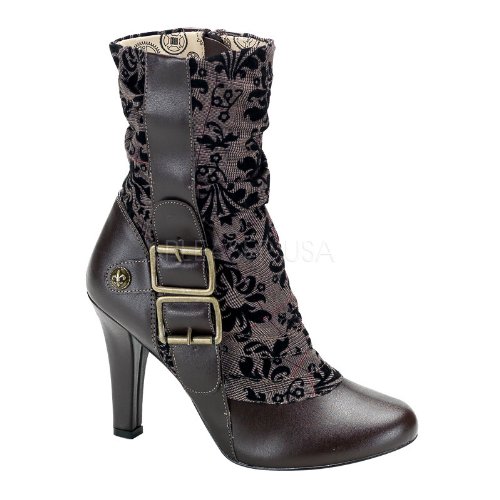 Studio : PleaserUSA Publisher : PleaserUSA Binding : Apparel Product Description Heel Height: Approx. 4' Tall. This high heel Tesla boot is Victorian inspired but hip enough for a night out. This mid calf boot has a multi-textural design with a metal buckle detail. It has a side zipper so it's easy to take off and put on. It features a stunning patterned tweed and a subtle metal fleur-de-lis detail. 0
