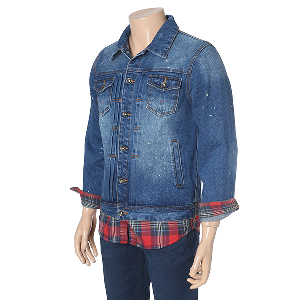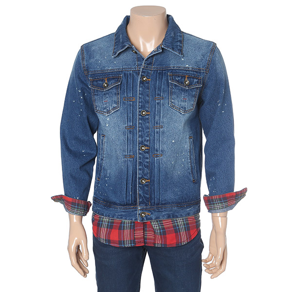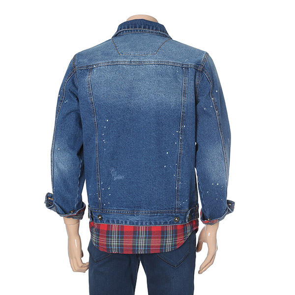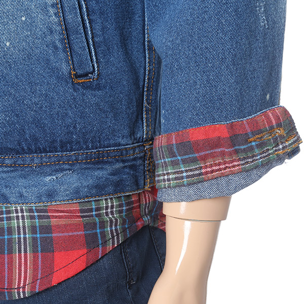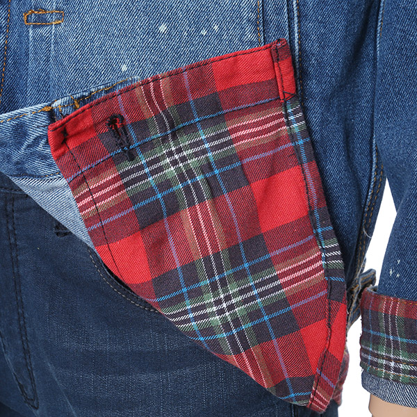 2018년 봄 신상품이며 기본 데님 점퍼이며 끝단 부분에 체크로 배색을 주었으며 끝단 체크 부분에는 단추로 연결이 되어 있어 탈부착이 가능하며 남녀 구분없이 착용가능하며 착용자의 움직임에 따라 활동성이 좋은 스타일의 데님점퍼 | |