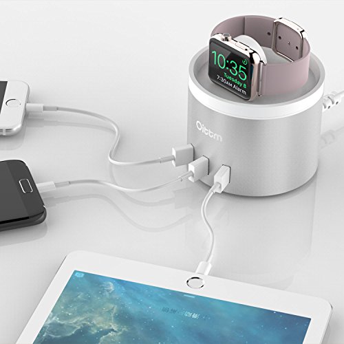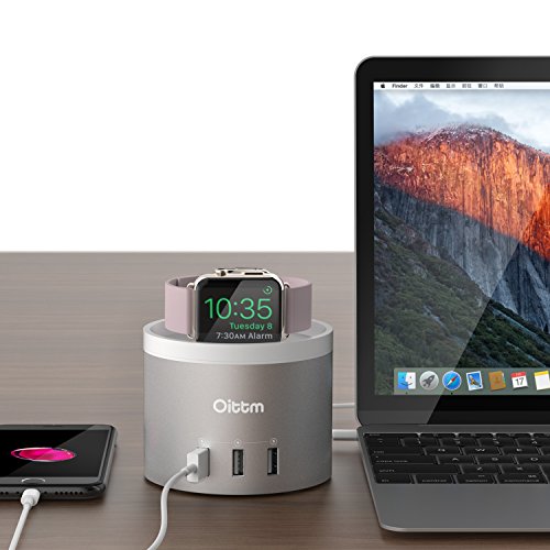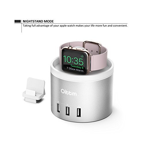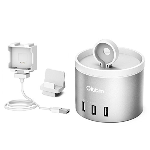 [The Oittm Advantage] 3 in 1 replaceable charging bracket for apple watch, iphone and fitbit blaze, fully considered user's needs. [4 Ports Mutilfutional Charger Stand] One inside USB port for the Apple Watch and three outside USB ports for other devices, supporting charging of all Apple Watch models & three USB 2.0 and 3.0 devices simultaneously (iPhone SE, iPad Pro, Samsung S7/Edge included).