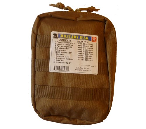 -. Feature : 1 Israeli Bandage 4" / 1 Lip Balm / 1 Set of Blue Nitrile Gloves / 1 Quik-Clot / 2 H&H Compress Gauze 4.5"x4.1yds.