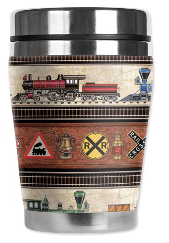 Mugzie Trains & Signs "Mini" Travel Mug with Insulated Wetsuit Cover, 12 oz, Black