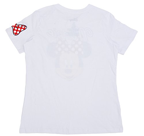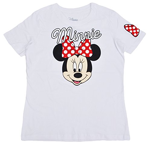 Women's Fitted t-shirt - runs smaller/slimmer than regular women's sizing. (Sizes Large and X-Large run especially small - you may want to buy a size larger.) Minnie Mouse print with Minnie's Bow detail on the left shoulder. Lightweight/thin fabric is 100% cotton. Machine wash cold with like colors and tumble dry low.Feature