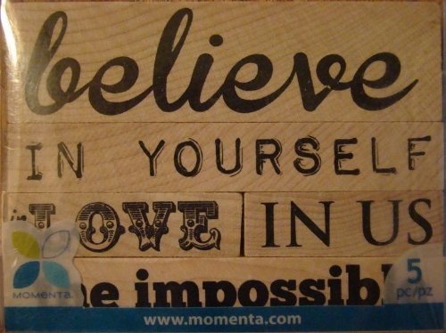 -. Feature : SIZE: approximately 4"x3" / Momenta Rubber Stamp Set / 5 stamps: Believe, in yourself, love, in us, the impossible / c 2013