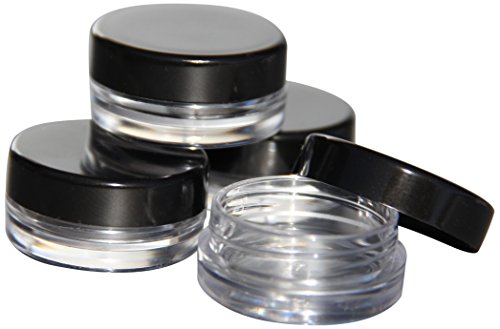 Dante Disposables Cosmetic Container Sample Jars, 3g/3ml, 100 Count with 100 Labels - Clear Jars w/Black Lids