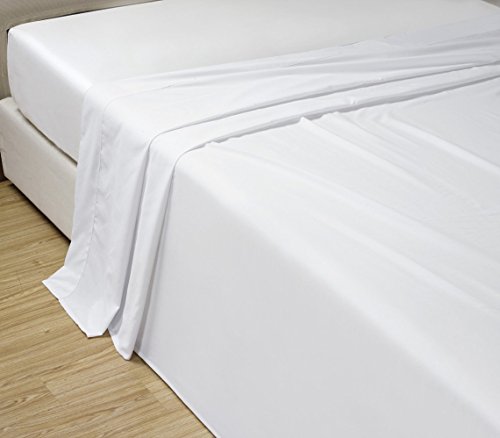 QUEEN size, WHITE Solid Flat Bed Sheet -Super Silky Soft -SALE -High Thread Count-Double Brushed Microfiber -1500 Series-Wrinkle, Fade, Stain Resistant, 100%