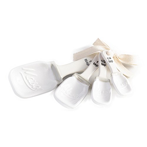 - This retro-chic, white ceramic Measuring Spoon Set captures the look of vintage mason jars and is a great addition to your kitchen.