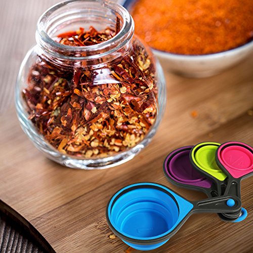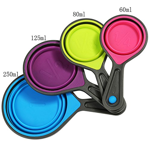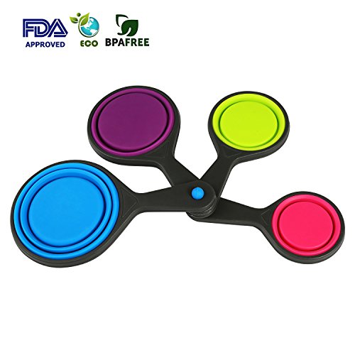 Collapsible Measuring Cups, BELLESTYLE 4pc Nesting Silicone Measuring Cup Set-1/4 Cup, 1/3 Cup, 1/2 Cup, 1 Cup Perfect for Pet Food, Coffee, Flour, Grains, Lentils, Spices, Honey, and Liquids