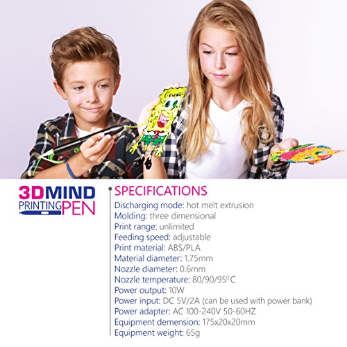 DISCOVER YOUR CREATIVY WITH PROFESSIONAL QUALITY 3D PEN. This is the superior design 3D Pen that gives you hours of flawless, trouble free fun. We've built all the right features into this pen to keep the filament flowing smoothly and at just the right speed and thickness to create anything you visualize. Get this NOW and enjoy the 3D Pen revolution that is sweeping the world! ADVANCED OLED DISPLAY makes it so easy to monitor temperature, filament flow, feed settings, material types and more. Easy for kids to do basic designs while offering exciting options for the more advanced adult user. No wonder this pen is a favorite with professional 3D artists and designers. CAN BE USED WITH POWER BANK and includes a power input at the top of the pen. That accepts the standard adapter power source we include in this kit. Notice the heat dissipation holes that let heat escape. The pen stays cool and comfortable and won't burn your hand like others do. There is a double click for continuous feed. That's great for long extrusions making them easy and effortless. 100% MONEY BACK GUARANTEE ensures this will be your best bet for a no-risk purchase. Many people love this 3D MIND Printing Pen so much they return to buy a 2nd and 3rd pen. HURRY AND BUY NOW while we have a new shipment in stock. These are selling very quickly. This pen set comes in a nice gift box great for friends, family, and co-workers. 0 |