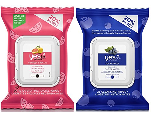 -. Feature : This bundle includes one 30 ct. bag of Yes to Grapefruit Rejuvenating Facial Wipes and one 30 ct. bag of Yes to Blueberries Cleansing Facial Wipes / Yes to Grapefruit Brightening Facial Wipes are on-the-go facial cleansing wipes / Packed with Grapefruit to cleanse, exfoliate, and leave skin feeling soft and bright / These Cleansing Facial Wipes are formulated with Blueberries to gently cleanse, remove makeup, and moisturize skin all in one