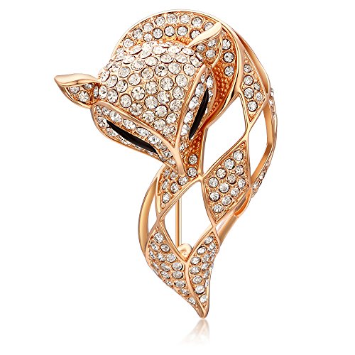 -. Title : Kemstone Rose Gold Crystals Accented Fox Brooch Pin for Women