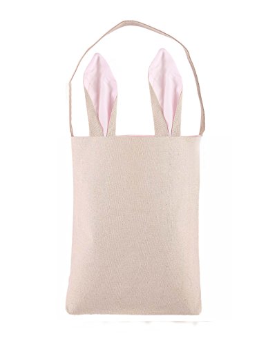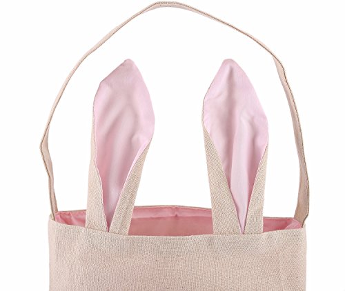 Easter Bags, PJS-MAX Dual Layer Bunny Ears Design Cotton Cloth Material Easter Gift Bag For Children Size 9.5"12"3.8",Weight 4.23 Oz,Bear 55 Ibs (Pink)