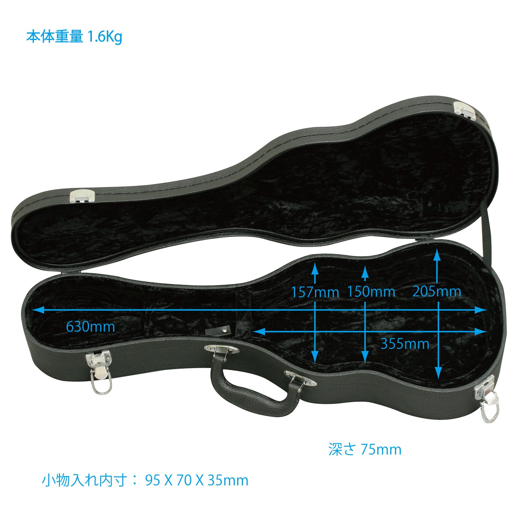 Kikutani concert Ukulele Hard Case for the full-length (inside dimension) 630mm UC-12 Black