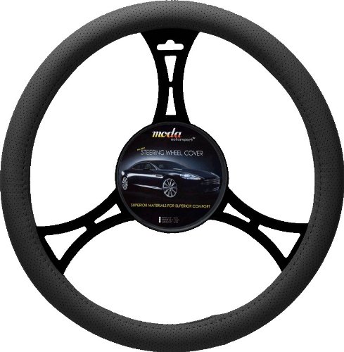 ModaMotorsports Black Large Sport Leather Steering Wheel Cover features a "Sport" leather design and offers easy slip on installation with no tools required. This model is summer and winter friendly, protecting your hands from hot and cold extremes. Large size fits almost all wheels with diameters between 15.5 inches - 16.5 inches. Instantly customize your vehicle with this brand new steering wheel cover. There is no better way to protect your vehicle's steering wheel.Feature