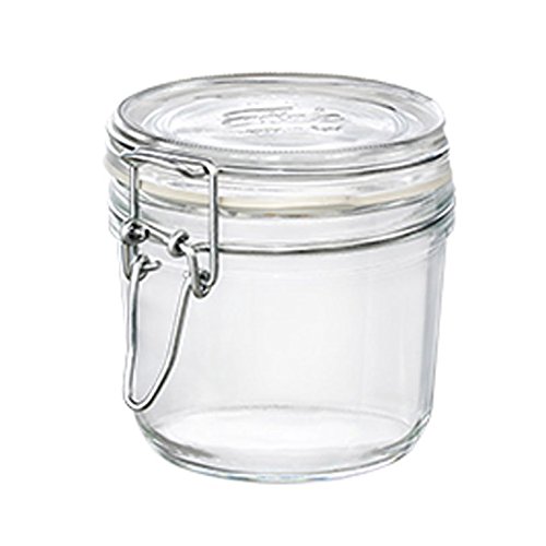 - Glass storage jars with airtight bail and seal closures keep out air and moisture