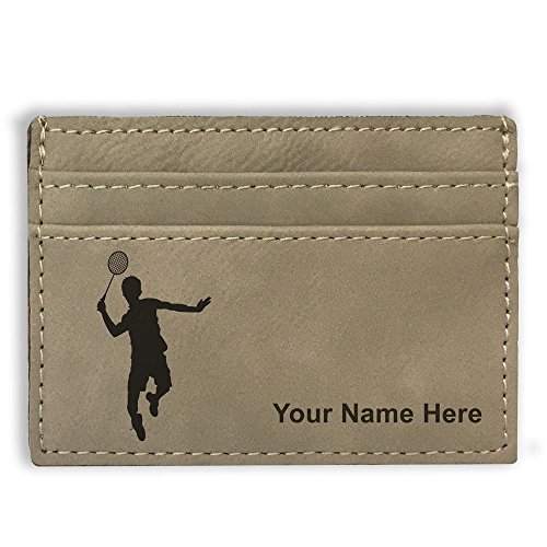 Money Clip Wallet - Badminton Player - Personalized Engraving Included (Light Brown)
