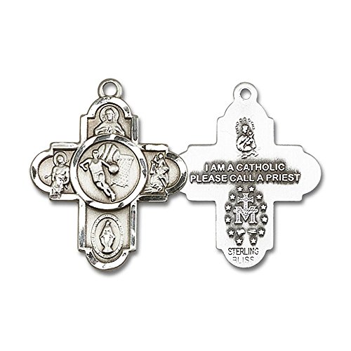 (Bonyak Jewelry Saint Medal Collection)/Baby Stationery/Stationery Sets/DIRECT FROM USA/Sterling Silver 5-Way / Basketball Pendant 1 1/8 X 1 5/8 inches with Heavy Curb Chain