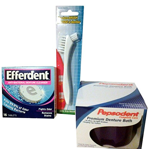 Dentures Cleaning Kit - Efferdent Cleaner, Case - Bath & Brush Bundle