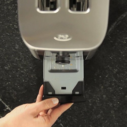 Deep, removable crumb tray catches crumbs and seeds and is accessible from the front for easy emptying.