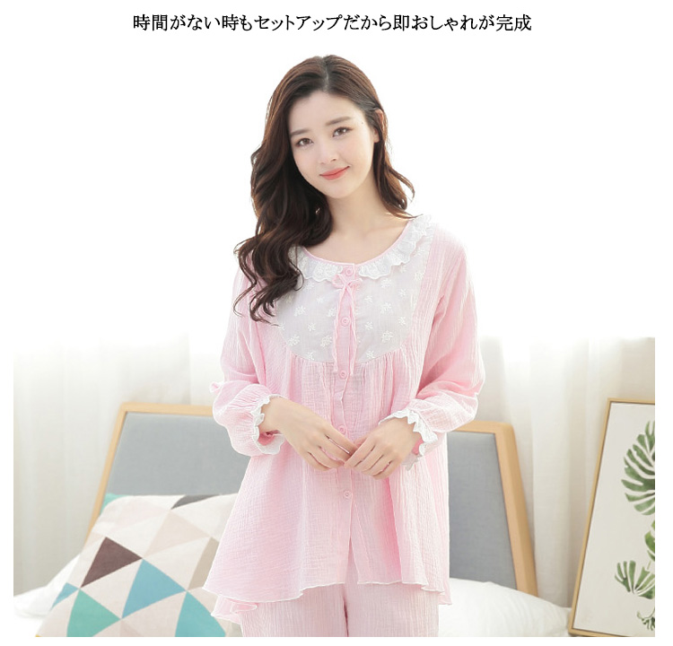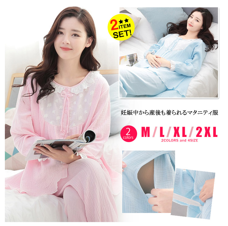 | 妊娠中から産後も着られるマタニティ服時間がない時もセットアップだから即おしゃれが完成綿で授乳中のベビーの肌にもやさしいトップスとガウチョそれぞれでも単品使いできて、着回し力抜群 | |