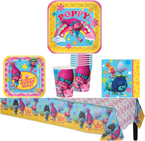 -. Title : Trolls Birthday Party Supplies Pack for 8 Guests - Lunch Plates, Dessert Plates, Lunch Napkins, Cups, and a Table Cover