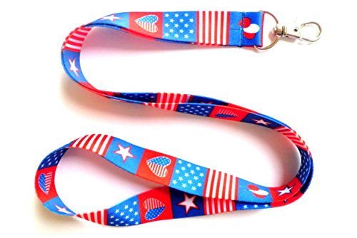 USA Flag Patriotic Print Lanyard Key Chain Id Badge Holder