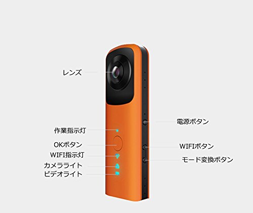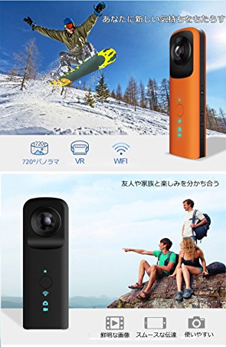 원본상품명: Lantch 360度全方位相机 パノラマVRカメラ ハンドヘルド HDデュアルレンズ 屋外DV WIFI支持 (オレンジ)