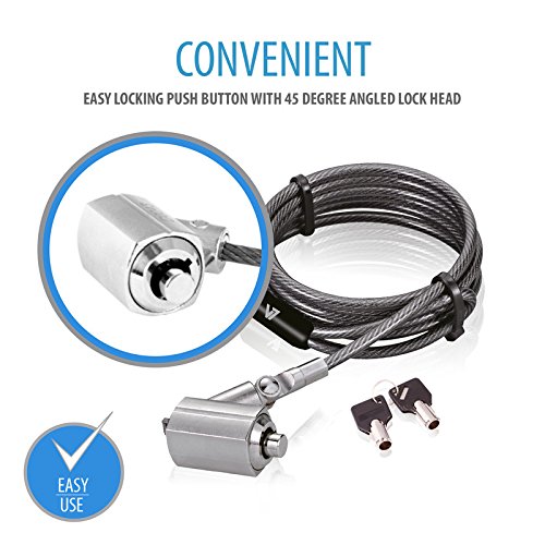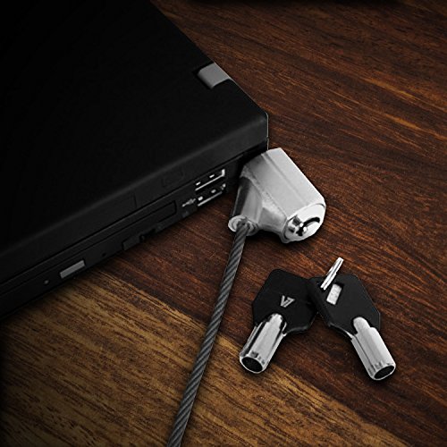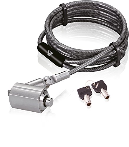 The V7 keyed security lock is designed for technology products that have a security lock slot and fits practically all notebook computers manufactured today. The security lock provides a simple and effective way to secure notebooks, desktops, monitors and projectors. The push-to-lock function and 45 degree cable design insures easy operation. The two security keys have vinyl jacketed key heads that are easy to hold and operate.
