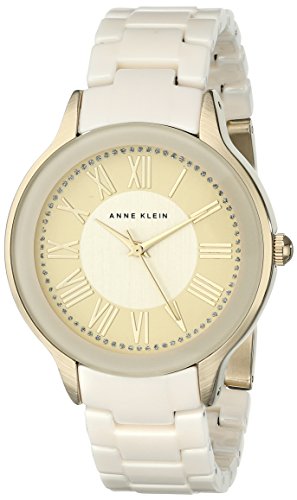 Studio : AK Anne Klein Publisher : AK Anne Klein Binding : Watch Product Description Complete your look with this elegant timepiece! Gold-tone case. White ceramic bracelet with jewelry clasp closure. Round face. Three-hand analog display with quartz movement. Light champagne dial features gold-tone hour markers, glitter accents, and Anne Klein detailing. Imported. 0