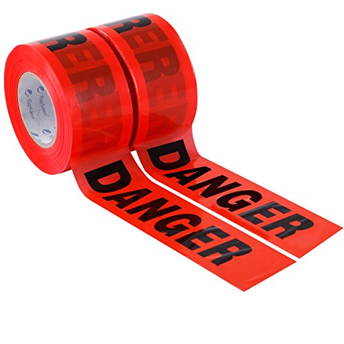 TopSoon Barricade Ribbon DANGER Tape Sharp Red 3-Inch by 1000-Feet Roll Non-Adhesive
