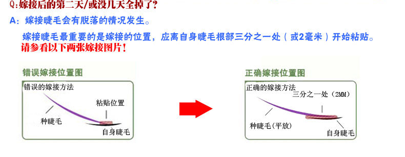 4,假睫毛粘胶水的时候,只粘到三分之一处,然后轻轻的拉出来,粘在假睫毛上的胶水不能有气泡 5,假睫毛不能粘到真睫毛的根部和皮肤上,应在真睫毛旁边,要离开真睫毛根部0.5-1MM,粘到真睫毛三分之二处