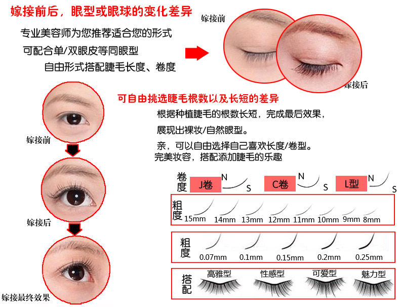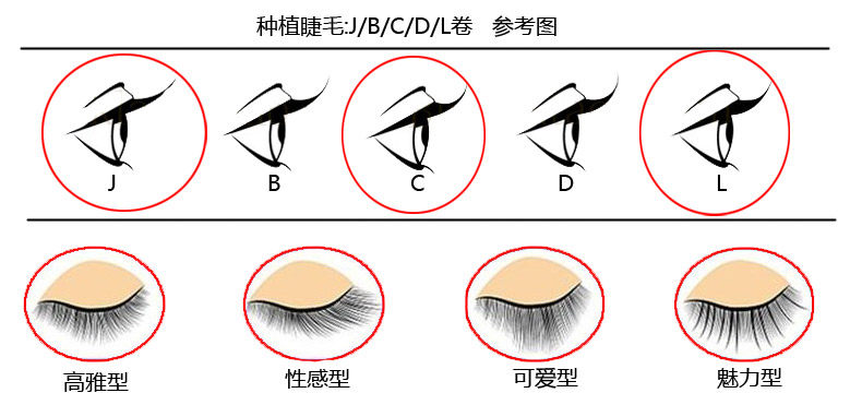3,观察顾客的睫毛后选择一些适合的睫毛,应前短中,长,后稍短