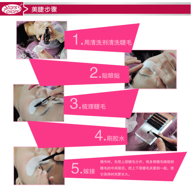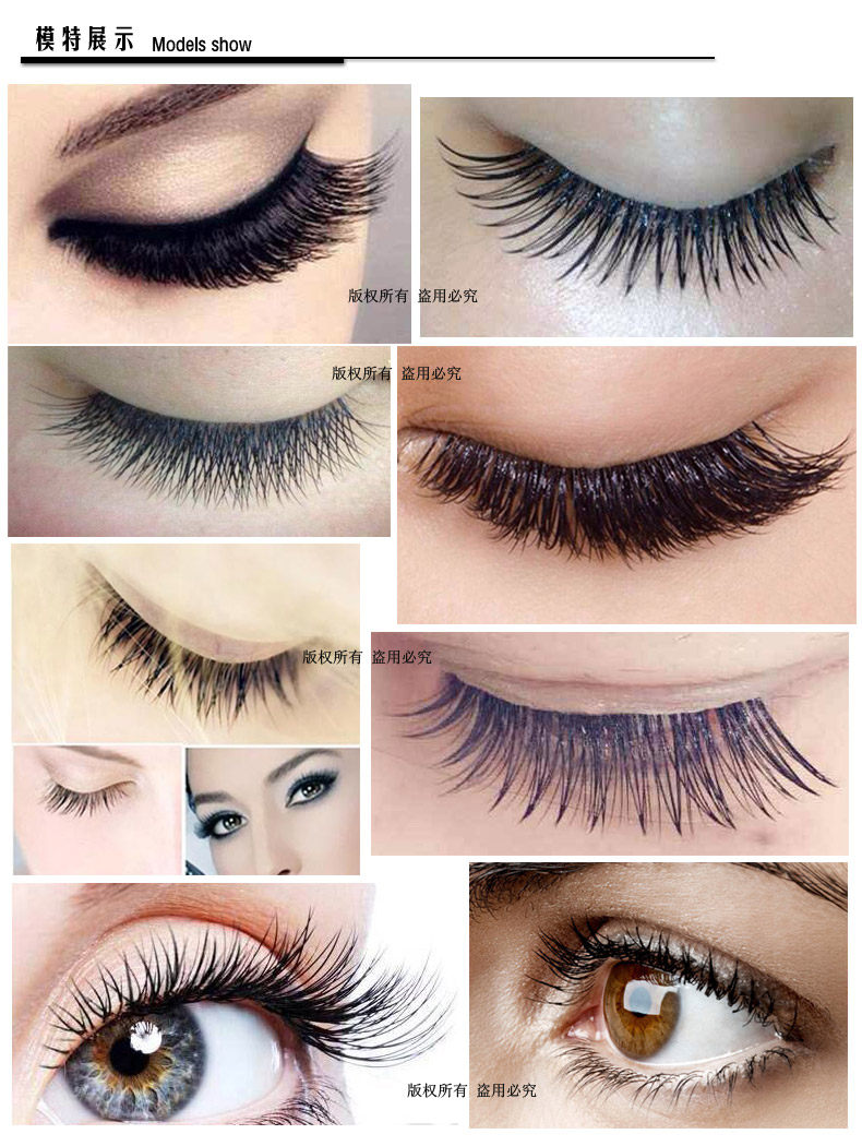 使用方法:请先清洁眼部,再使用粘着剂,并且睫毛相接处要达到0.5至1公分,等待粘着剂完全干了,可维持三个月不脱落